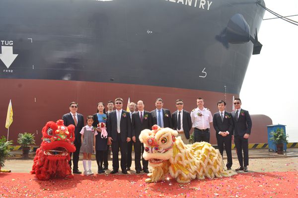 儀式上,劉海金總經(jīng)理和中遠(yuǎn)海運(yùn)發(fā)展有限公司副總經(jīng)理蘇光分別致辭。劉海金總經(jīng)理對(duì)出席今天慶典活動(dòng)嘉賓的到來(lái)表示熱烈歡迎,對(duì)船東Navig8、融資方中遠(yuǎn)海運(yùn)發(fā)展有限公司、KR船級(jí)社的相互信任與愉快合作表示充分感謝,對(duì)在四艘船舶建造過(guò)程中付出辛勤和汗水的人員表示由衷感謝,50000噸化學(xué)品油船的成功建造是大家努力進(jìn)取、竭誠(chéng)合作的成果與結(jié)晶,相信大家的通力協(xié)作下,彼此間的發(fā)展前景會(huì)越來(lái)越好。