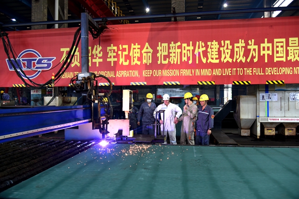 6月30日上午,公司在鋼加車間東區(qū)一跨舉行船舶點(diǎn)火開工儀式,4#13000箱集裝箱船船體結(jié)構(gòu)件開始切割預(yù)制。公司生產(chǎn)管理負(fù)責(zé)人陳月鋒與船東Hapag-Lloyd公司代表出席活動(dòng)。
