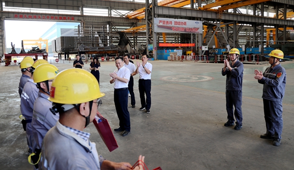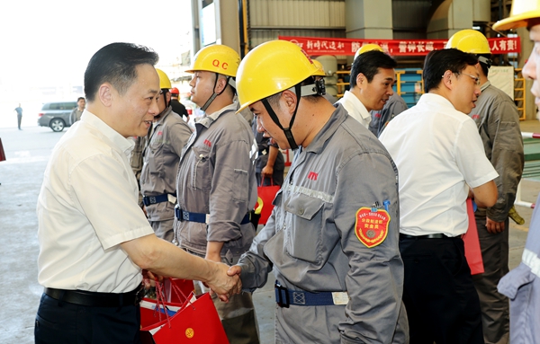 申強(qiáng)一行來到智能化分段車間,與現(xiàn)場員工親切交流,詢問工作時(shí)間、防暑措施等情況,將防暑降溫用品送到一線員工手中,并叮囑大家注意健康防護(hù),注意勞逸結(jié)合,落實(shí)防暑降溫措施,為企業(yè)多做貢獻(xiàn)。