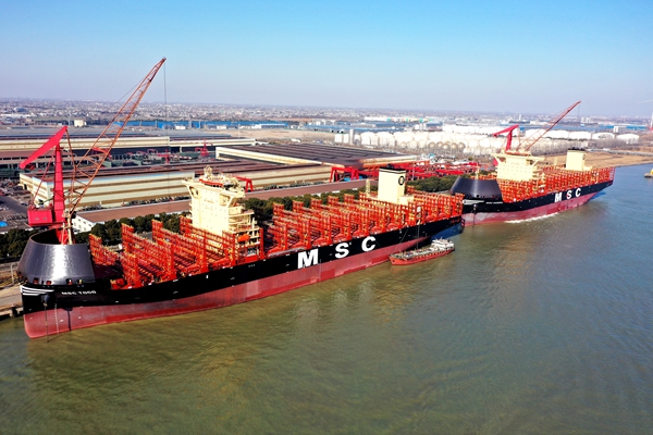 1月9日上午,公司在新區(qū)碼頭隆重舉行船舶命名儀式,2#8#8100箱雙燃料動(dòng)力集裝箱船被分別命名為“MSC TOGO”“MSC NIGERIA”號(hào)。