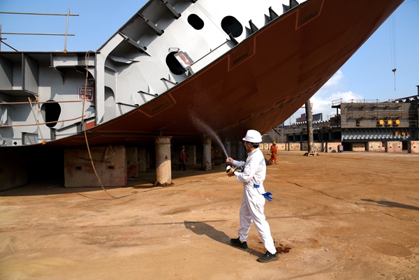 實干當(dāng)前:兩艘船舶進塢合攏(圖)