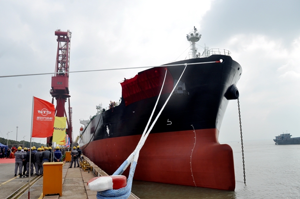 47#50000噸成品油輪/化學品船總長183.24米,型寬32.2米,型深19.1米,設計吃水11米,結構吃水13.3米,載重50000噸,入KR船級社,英國船東Navig8訂制的6艘50000噸Ⅱ類化學品船中的第二艘船舶,該船于28日交付船東運營。