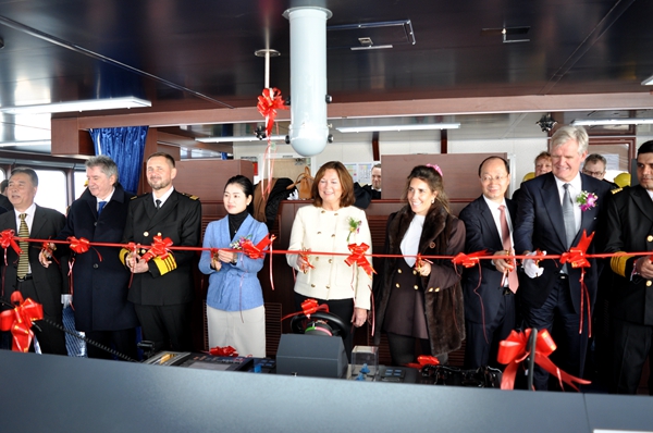 總經(jīng)理劉海金、常務(wù)副總經(jīng)理張玉永、副總經(jīng)理袁衡、總經(jīng)理助理徐震宇等公司領(lǐng)導(dǎo)與船東喜馬拉雅航運(yùn)公司總裁Tor Olav Trøim、39#船教母Berit Hauge、40#船教母Cristina Villarreal Fraile、41#船教母Mina Iizawa、江蘇金租董事長熊先根、建信金租副總裁安志成、中國銀行天津市分行副行長張屹東、中國銀行江蘇省分行副行長江東、SeaQuest執(zhí)行總裁Jan Andersson、美國船級社挪威分部商務(wù)經(jīng)理Egil Egland等嘉賓出席活動。